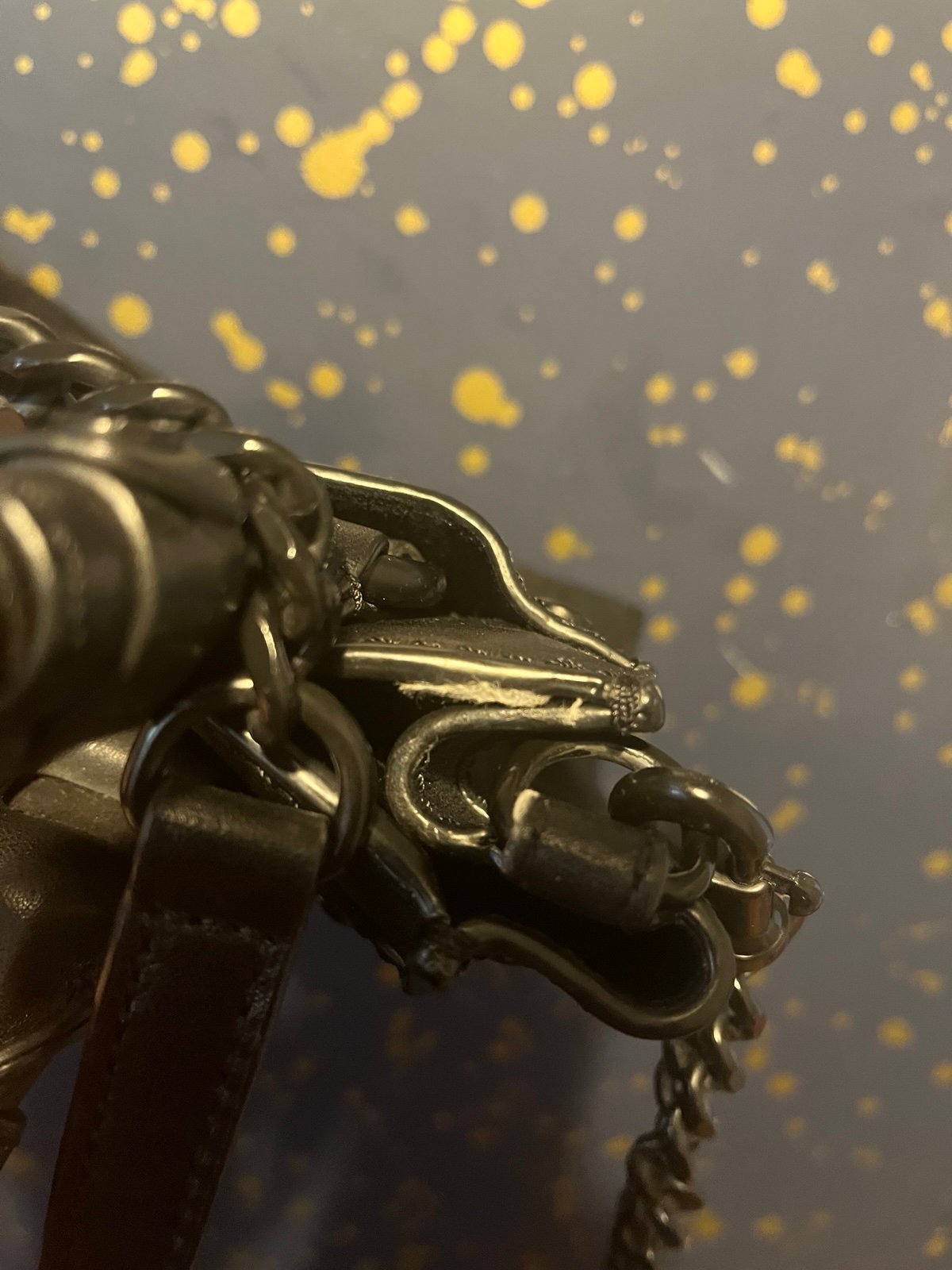 This is a super cute bag it’s use ti have black calf hair only on front so it shed so now it just all black leather which I amazing because true is such good leather, only other flaw is this small scratch at top of bag you can barely see and can be covered with shoe polish or leather dye bag is still beautiful and looks exactly like photos. Elegant black leather women bag with a sleek design. Perfect for any occasion. Smoke free home 9x 7 inches