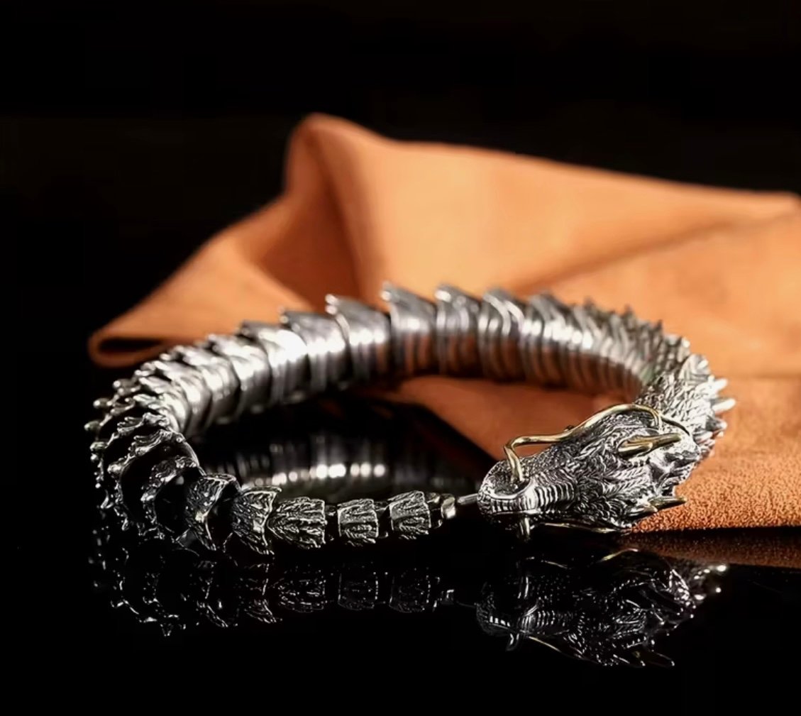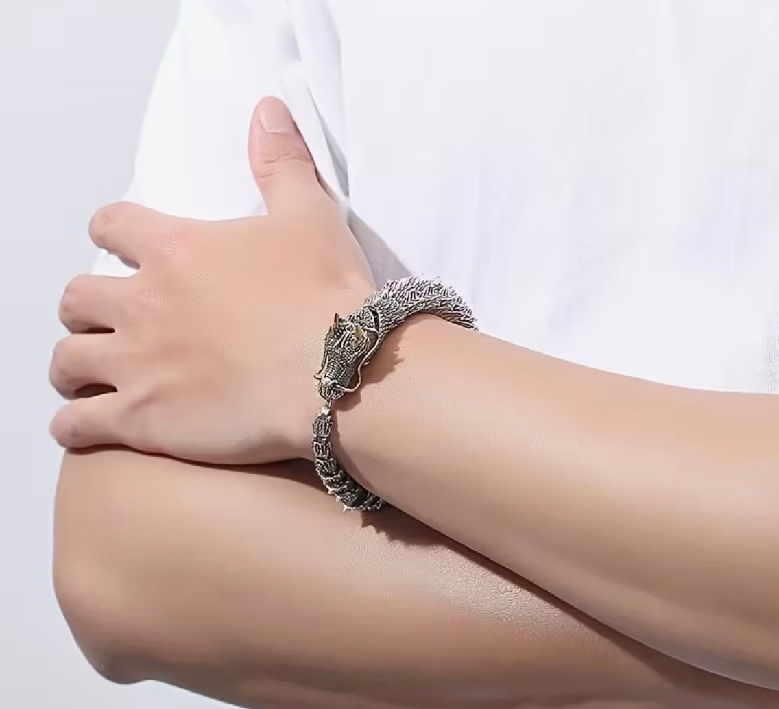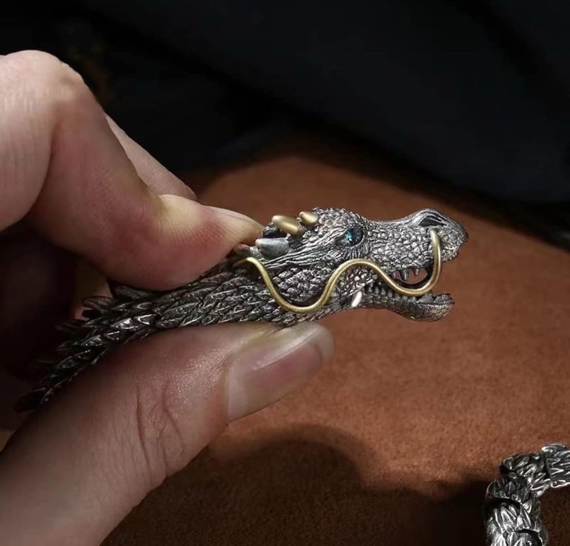 This Handmade Dragon Bracelet is in outstanding Jeweler Quality. It is high gloss polished, tarnish resistant and durable enough to stand the test of time. This Unique Dragon Scale Bracelet comes in 8.7” length. It is made out of stainless steel and 925 sterling silver that is hypoallergenic, which is very suitable for anyone with sensitive skin. If festive or casual, it is a stylish bracelet for everyone's wardrobe.